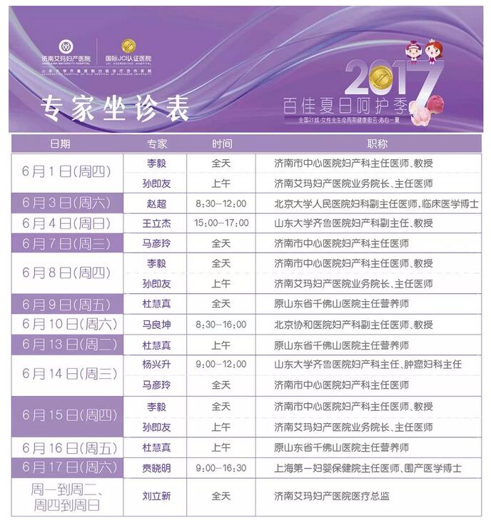 注:部分医生出诊时间偶有变动,具体请以院内实际排班为准。