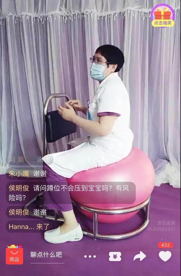 刘护在直播间给宝妈演示了分娩球的使用方法