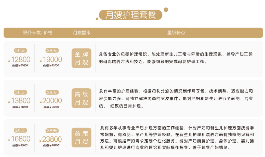 为产后妈妈,提供包括日常护理、生理护理、母乳喂养指导、新生儿照护指导、产后乳房管理、环境卫生、用品洗涤、心理健康指导、科学月子餐制作等多种温馨服务。